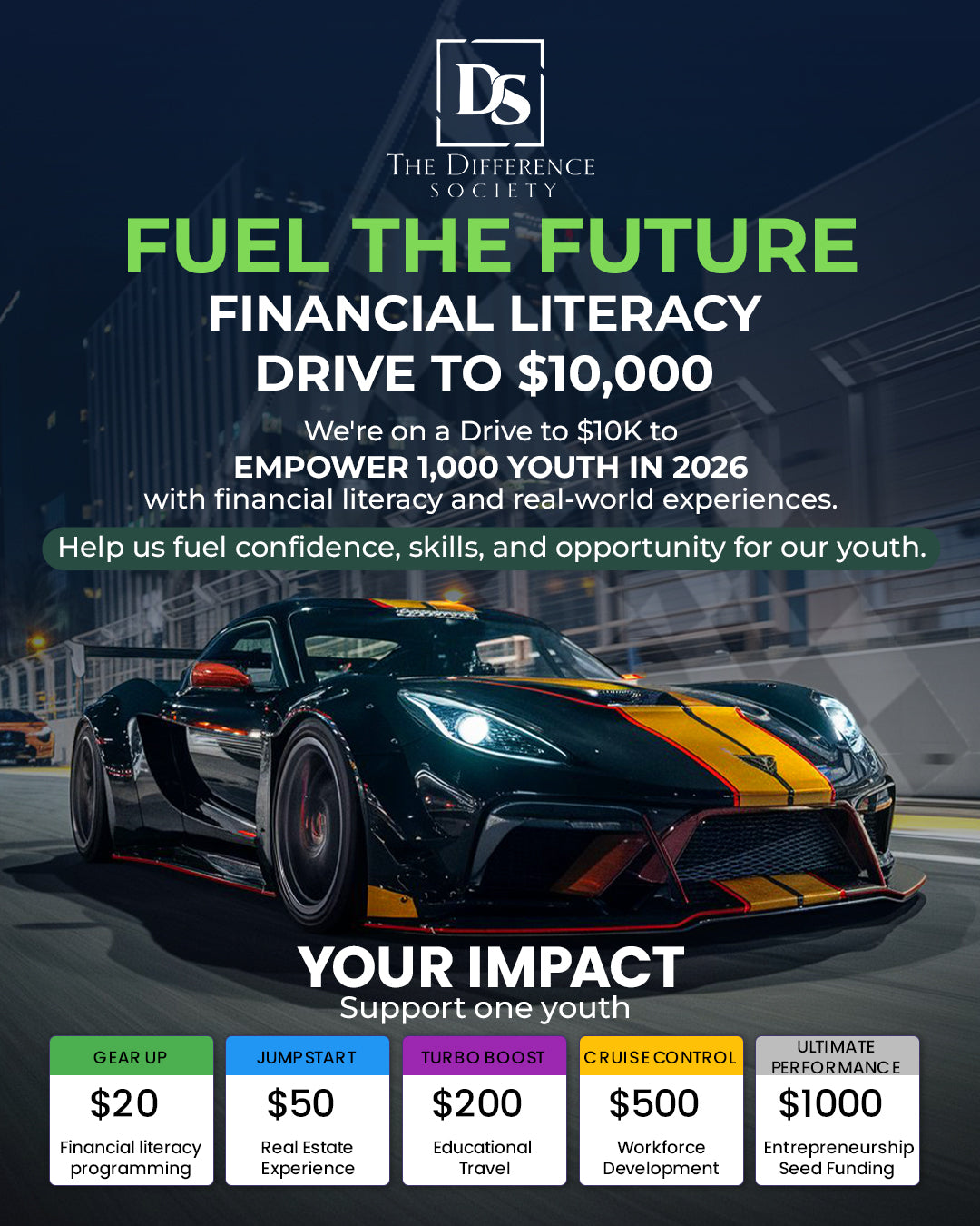 Fuel the Future: Financial Literacy Drive our campaign to raise $10,000 and expand access to the opportunities our communities deserve to reach 1,000 youth in 2026.